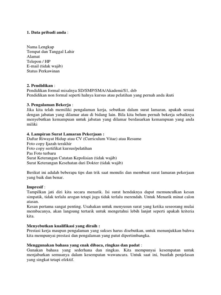 Contoh Resume Lamaran Kerja Pdf - Doc Download Contoh Surat Lamaran Pekerjaan Terbaru Nekopencil